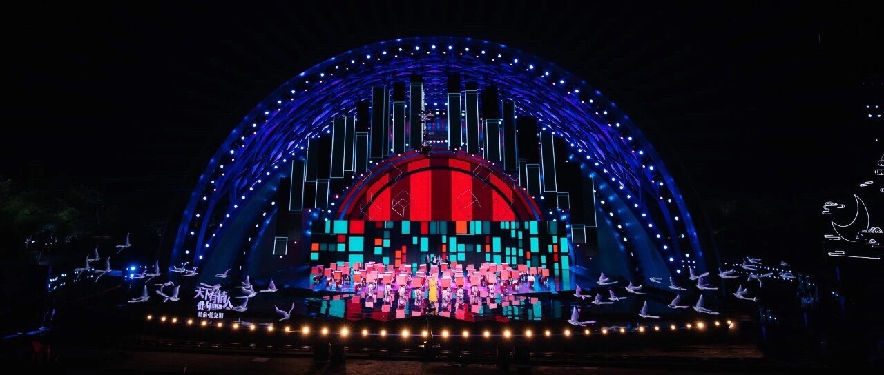 ? ? ? ? 從2016年首度合作至今,紅豆集團(tuán)聯(lián)合央視推出七夕特別節(jié)目已經(jīng)走過(guò)了五個(gè)年頭,也是這臺(tái)晚會(huì)選擇戶外錄制的第四年。2016年,紅豆為央視中國(guó)情人節(jié)特別節(jié)目隆重代言,正式拉開(kāi)同央視合作的帷幕,與“天下有情人”共度浪漫七夕。2017年,這臺(tái)七夕晚會(huì)首次走出演播室,進(jìn)駐七仙女傳說(shuō)之鄉(xiāng)江西新余,在旖旎的仙女湖畔搭建實(shí)景舞臺(tái),在古典風(fēng)潮與現(xiàn)代技術(shù)融合中,來(lái)了一場(chǎng)精妙唯美的時(shí)空穿越之旅。2018年,晚會(huì)首次在南北兩個(gè)會(huì)場(chǎng)平行推進(jìn),南依然是江西新余仙女湖,北則選了有著深厚七夕節(jié)文化淵源的陜西西安昆明池,南方的溫柔婉約和北方的古樸大氣在七夕交相輝映;2019年于仙女湖畔描繪“七彩七夕”,鄰水而建的舞臺(tái)與水面倒影,形成水天一色的美景,盡顯古典風(fēng)韻。