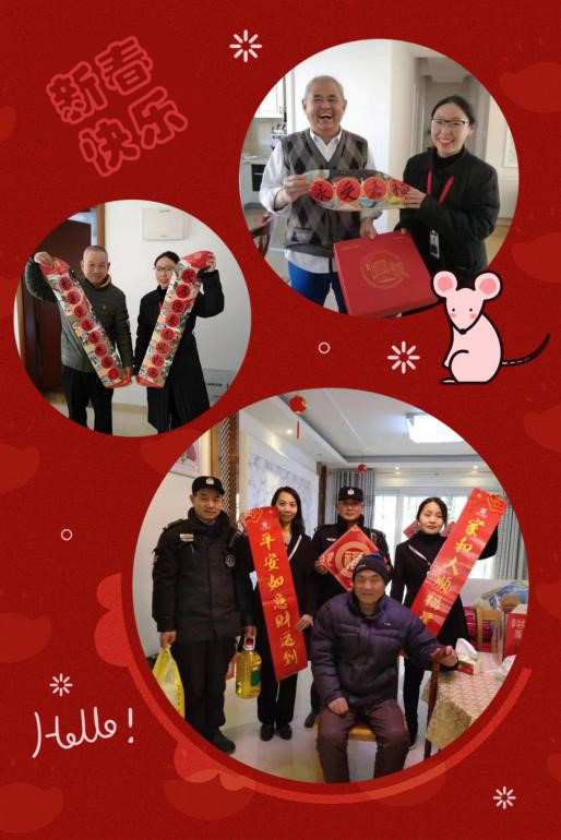一大早,物業管家、黨員業主代表、社區志愿者便帶著年味十足的對聯、福字貼、大米、食用油等年貨禮品,上門探望了小區里的獨居老人、低保戶、困難戶以及模范家庭,一句“新年快樂”,一陣笑語歡聲,一個暖意十足的握手,彰顯的不僅是來自紅豆物業最真摯的節日問候,更見證了紅豆物業貼心服務的赤誠。