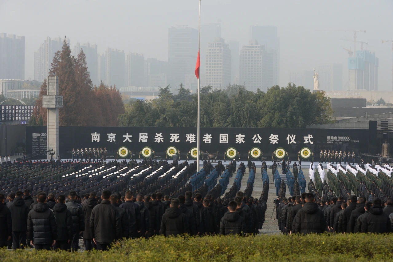 今日上午,2020年南京大屠殺死難者國家公祭儀式在侵華日軍南京大屠殺遇難同胞紀念館廣場隆重舉行。公祭儀式由全國人大常委會副委員長沈躍躍主持,中共中央政治局委員、中組部部長陳希出席并講話。國務委員王勇、全國政協副主席鄭建邦和中央軍委委員、軍委政治工作部主任苗華出席。江蘇省委書記婁勤儉、省長吳政隆,參加過抗日戰爭的老戰士老同志代表,中央黨政軍群有關部門和東部戰區、江蘇省、南京市負責同志,各民主黨派中央、全國工商聯負責人和無黨派人士代表,南京大屠殺幸存者及遇難同胞親屬代表,國內相關主題紀念(博物)館、有關高校和智庫專家、宗教界代表,駐寧部隊官兵代表,江蘇省各界群眾代表等參加公祭儀式。紅豆集團黨委書記、董事局主席周海江作為企業家代表受邀參加了此次公祭儀式。