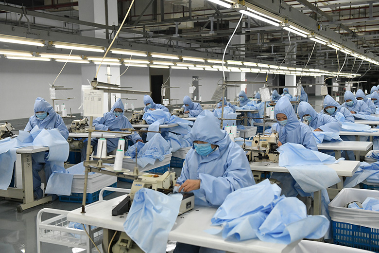 2月5日下午,走進紅豆股份新建成的西服車間,只見一派熱火朝天的繁忙景象。面對疫情,這個新車間一夜之間被改造成的防護服生產(chǎn)車間,200多名工人戴著口罩,正在加緊趕制防護服。“防護服是緊缺的醫(yī)療物資。為了支援抗疫前線,我們2月1日啟動了防護服生產(chǎn)。”紅豆股份常務副總經(jīng)理顧金龍介紹,起初,大家心里都沒底,畢竟沒涉足過這個領域。但紅豆股份有成熟的服裝生產(chǎn)技術,為一般防護服實現(xiàn)快速生產(chǎn)創(chuàng)造了有利條件。
