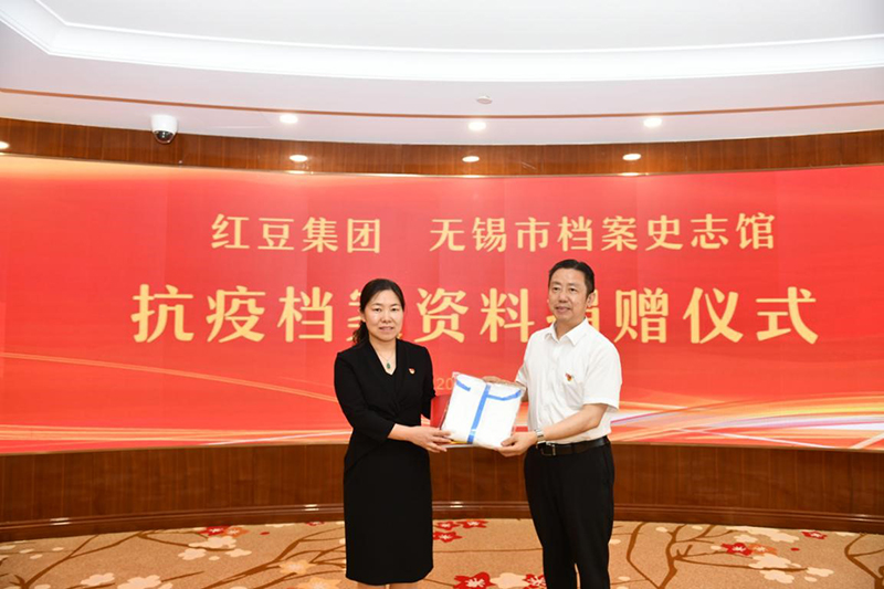 無錫市檔案史志館系統(tǒng)、深度、精準(zhǔn)地挖掘開發(fā)檔案史志資源,不斷提升新形勢下檔案史志工作水平,服務(wù)發(fā)展大局、服務(wù)社會(huì)民生,為無錫經(jīng)濟(jì)的高質(zhì)量發(fā)展作出了積極貢獻(xiàn)。紅豆集團(tuán)作為全國先進(jìn)基層黨組織,在疫情防控期間,凝聚強(qiáng)大力量,積極支持一線抗疫,勇?lián)?zé)任,為抗疫前線提供支持與保障。此次,雙方舉行檔案史料相互捐贈(zèng),既是對這場戰(zhàn)疫的永恒銘記,也是對這場人民抗疫戰(zhàn)爭的最好致敬。
