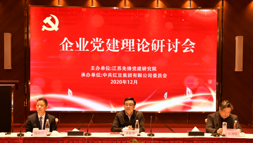 ? ? ? 為深入貫徹中共中央提出的構建雙循環新發展格局和深化國有企業改革的指導方針,通過研究探討黨建工作經驗以及不同所有制形態企業黨建工作的聯動互促機制,進而將黨建的政治優勢轉化為發展優勢,共促中國經濟發展,12月30日,由江蘇先鋒黨建研究院組織的“企業黨建理論研討會”在省黨支部書記學院民企分院(紅豆集團)召開。江蘇省委“兩新”工委副書記季振華出席研討會并致辭,江蘇先鋒黨建研究院理事長、江蘇省律師協會會長、黨委副書記薛濟民出席,江蘇先鋒黨建研究院副理事長、紅豆集團黨委書記周海江作會議開幕致辭并作主題發言,江蘇先鋒黨建研究院院長倪春主持會議開幕式。